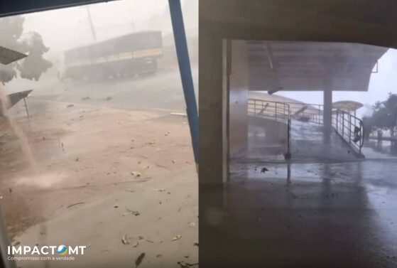 Vídeos registrados por moradores de Alto Garças mostram a intensidade dos ventos e da chuva.